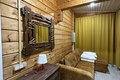 Половина домика за заборчиком со своей небольшой территорией. Двуспальная кровать, раскладной диван за стеной без двери, кухня, холодильник, чайник, микроволновка, санузел совместный с душевой кабиной. Все чисто. У кровати узкий проход с обоих сторон, но не критично. Завтрак шведский стол вполне приличный. Дом отдыха на берегу реки. Есть мангалы у каждого домика, беседки, баня с купелью.
